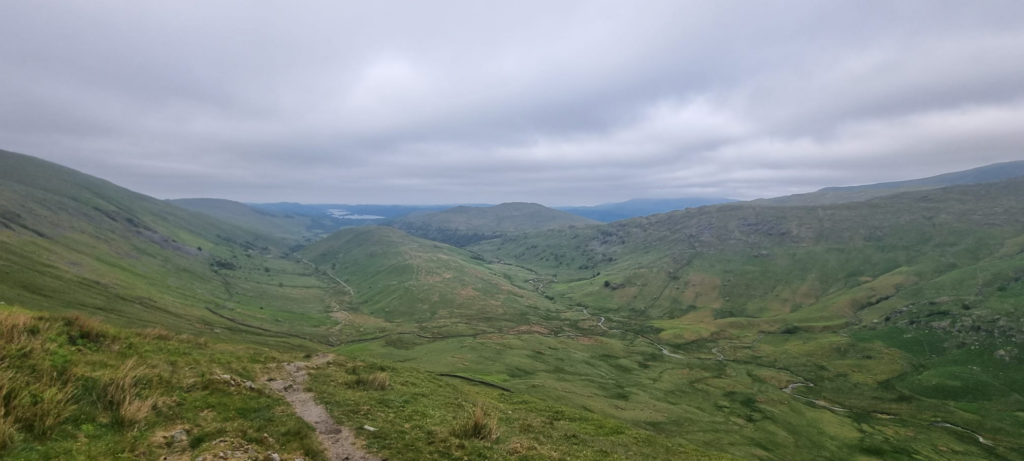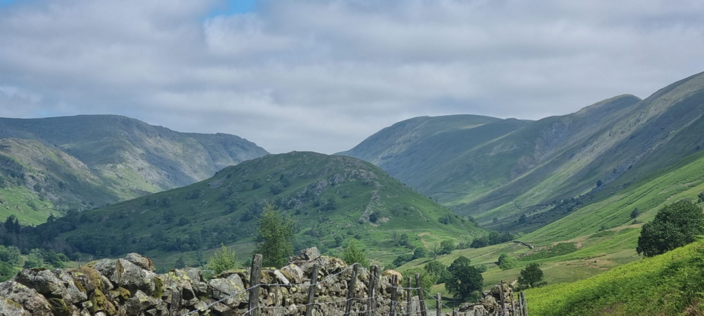 The walk back was straightforward. Just after the path up to Troutbeck Tongue, I opted to go left over a footbridge and follow a bridleway all the way back. Now, with the sun finally out and the cloud lifting, I could look back at where I had been