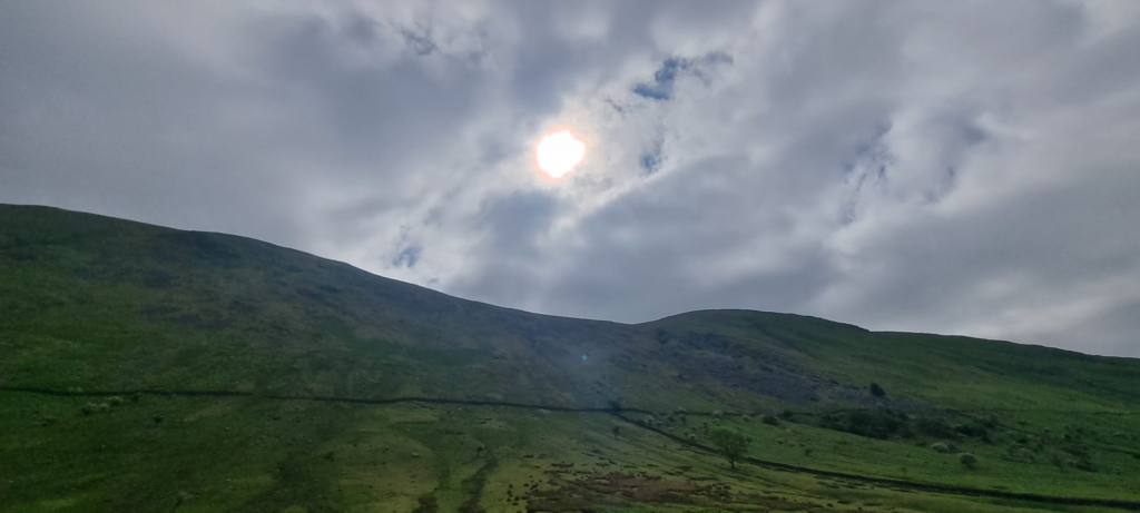 I took the descent slowly to avoid aggravating my knee, and it took around an hour to complete the steepest part towards the end of Troutbeck tongue. It was only then, when I’d reached the bottom, that the sun finally appeared
