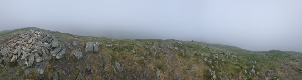I finally reached Yoke after an hour at 6:40am. I was well into the cloud layer, visibility was around 300m, which was disappointing. I didn’t spend long here, and pushed on to Ill Bell.
