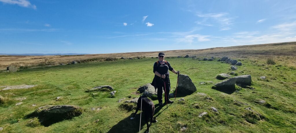 We set off around 11:00 from Waterside House Campsite, walking along the riverbank to Pooley Bridge. Some steady climbing out of the village on a road soon gave way to a gravelly track, and we were soon at the Cockpit, a stone circle and handy waypoint.