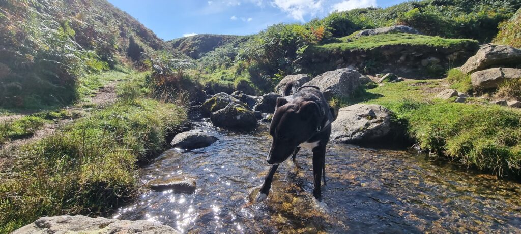 From there it was a long but easy climb towards Arthur’s Pike. I was carrying 3 litres of water for me, and 2 litres for the dog, but I needn’t have bothered as there was plenty for him to drink en route.