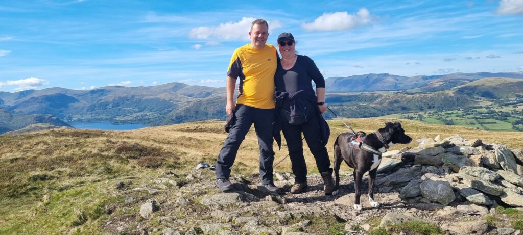 The trig point was unfortunately sitting in it’s own little puddle and was a haven for insects, so we could not linger. Views were stunning, from the Pennines to the east, and Helvellyn to the west.